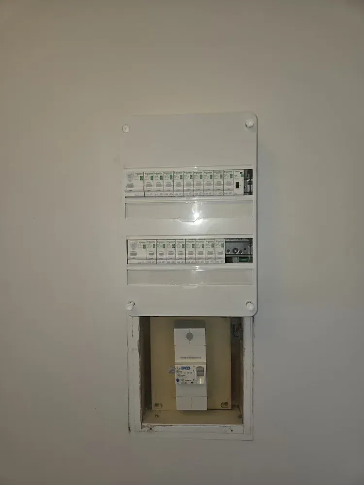 Chez STAES ELEC, nous sommes fiers de vous annoncer une nouvelle intervention réussie à Marseille 13008 ! Notre équipe d'experts a récemment procédé au changement d'un tableau électrique ancien, équipé de portes à fusibles, par un modèle moderne et sécurisé de la marque Schneider électrique. Cette mise à jour inclut l'installation de disjoncteurs, de disjoncteurs différentiels, ainsi que de contacteurs et de protections pour chauffe-eau. Pour une finition esthétique et sécurisée, un coffre avec porte a été ajouté, apportant une touche de modernité et de sécurité à l'installation.