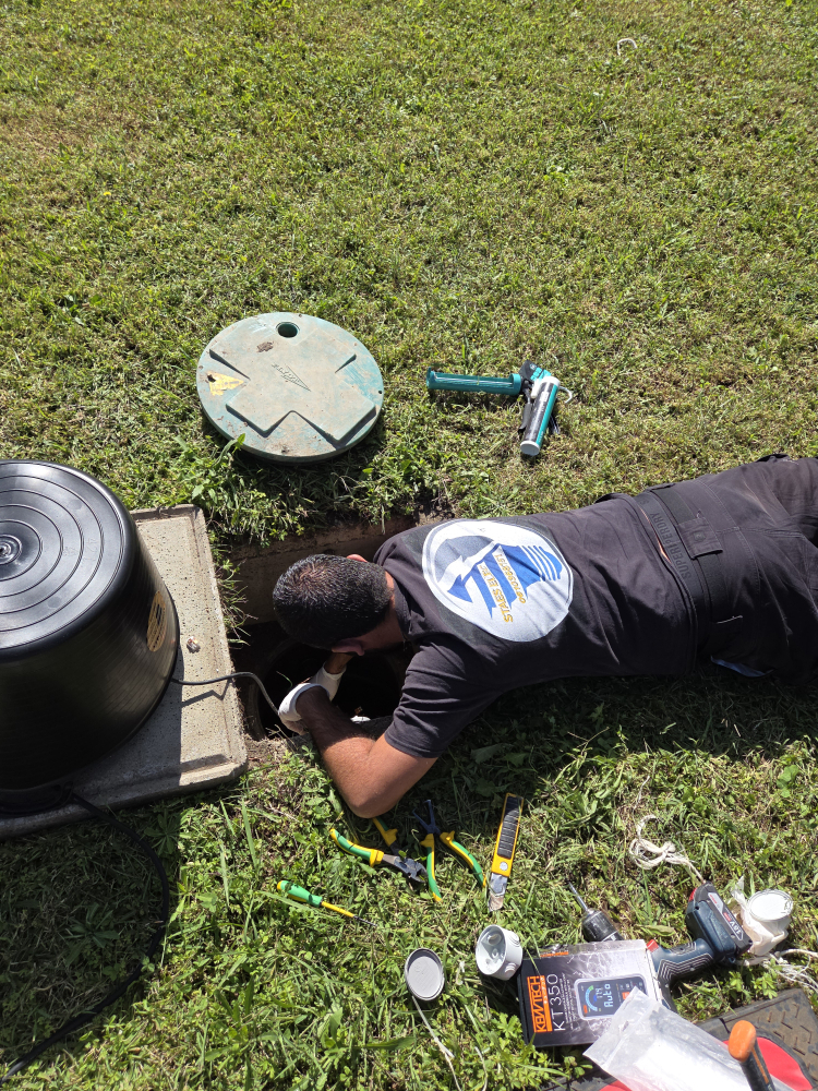 Votre électricien a St Cannat a réalisé la réparation d'une pompe de relevage.Un raccord a était fait sur ce cable la ou il y a eu le soucis .Réparation en coupant le cable et en le rallongeant dans une boite de dérivation avec la pose de gel pour une protection contre l'eau.
